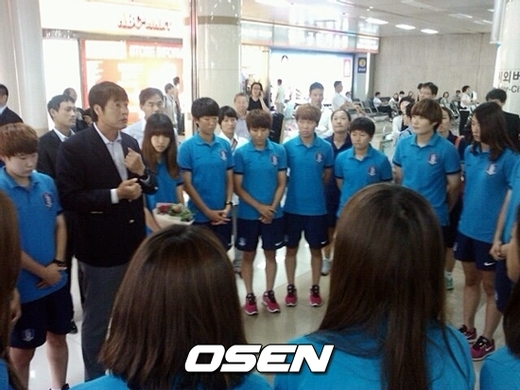 정성천 감독을 비롯한 선수단은 밝은 모습으로 입국장에 나타났다. 하지만 기념 사진 촬영을 마치고 해산할 즈음에는 눈물을 터뜨리는 선수가 있었을 정도로 일본과 8강전 경기서 1-3으로 당했던 패배의 진한 아쉬움도 남았다.