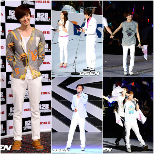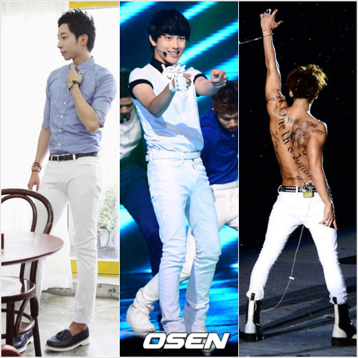 8월을 뜨겁게 달궜던 SM타운 라이브 월드투어 콘서트에 등장한 SM 소속 가수들이나, 각종 제작보고회에 등장한 남자 스타들 또한 화이트 팬츠를 입은 모습을 많이 찾아볼 수 있다.