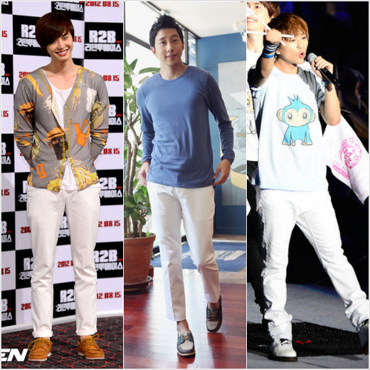 그렇다면 남심은 어땠을까. 남자 바지는 ‘무조건 짙은 색’이라고 생각하는 이들이 여전히 많음에도, 남자들 또한 이른바 ‘백바지’ 열풍에 꽤나 많이 동참하고 있다. 특히 트렌드를 앞서나가기로 유명한 스타들이 그렇다.