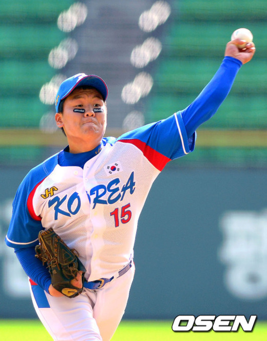 31일 오후 서울 잠실구장에서 열린 '세계청소년야구선수권대회' 한국과 베네수엘라의 경기, 5회초 이수민이 송주영에 이어 마운드에 올라 역투하고 있다.