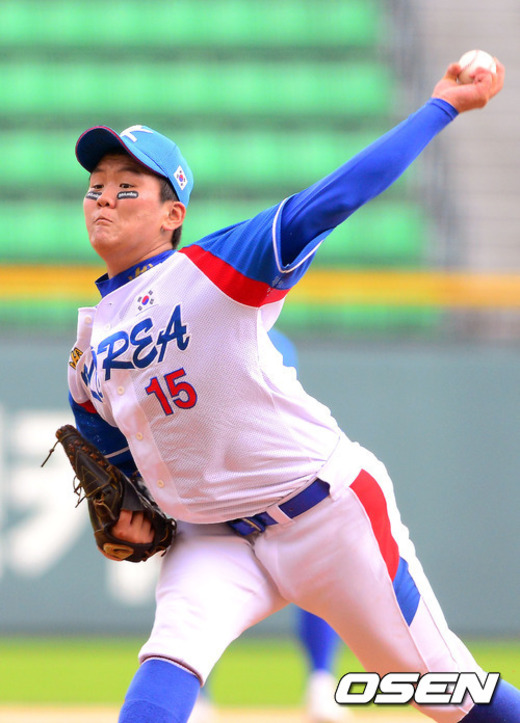 1일 오후 서울 잠실구장에서 열린 '세계청소년야구선수권대회' 한국과 미국의 경기, 1회초 한국 이수민이 역투하고 있다.