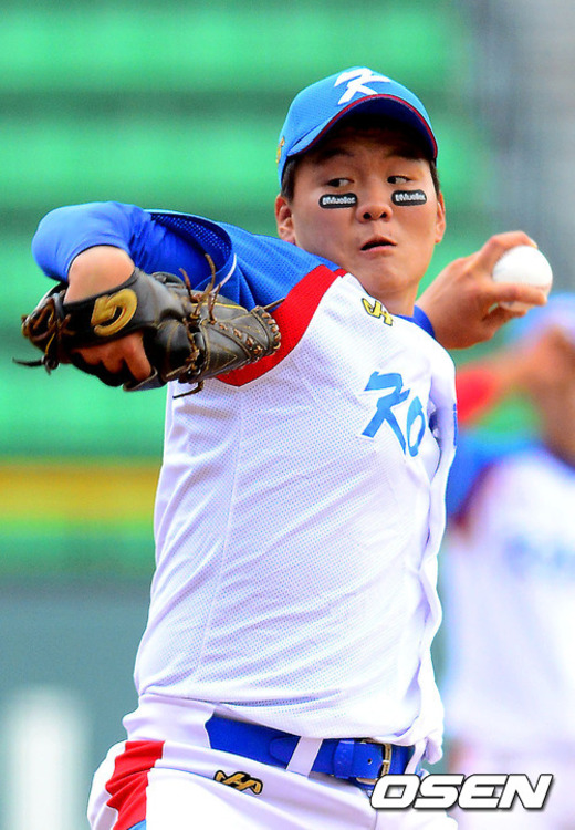 1일 오후 서울 잠실구장에서 열린 '세계청소년야구선수권대회' 한국과 미국의 경기, 1회초 한국 이수민이 역투하고 있다.