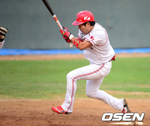 1일 오후 광주 무등야구장에서 열린 '2012 팔도 프로야구' KIA 타이거즈와 한화 이글스의 경기, 4회말 무사 KIA 이용규가 한화 김혁민의 몸쪽공에 놀라고 있다.