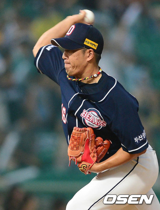 1일 오후 인천 문학구장에서 열린 '2012 팔도 프로야구' SK 와이번스와 두산 베어스의 경기 7회말 교체된 두산 김승회가 역투하고 있다.