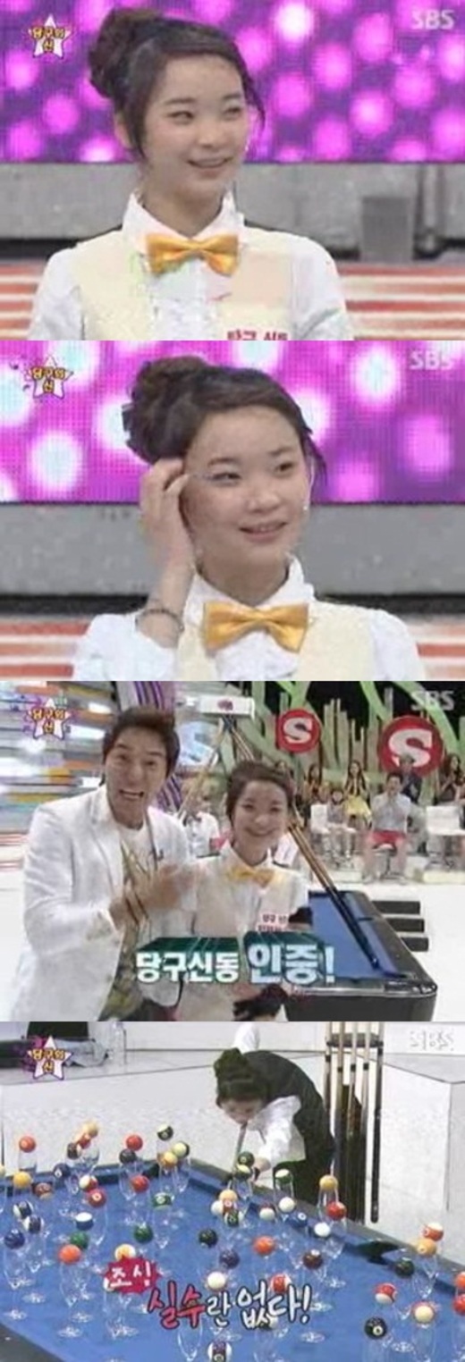 1일 오후 6시 30분 방송된 SBS '스타킹'에서는 '당구의 신' 60세 김종석씨와 '당구 신동' 13세 김보건 양이 출연해 서로의 당구 실력을 뽐냈다.