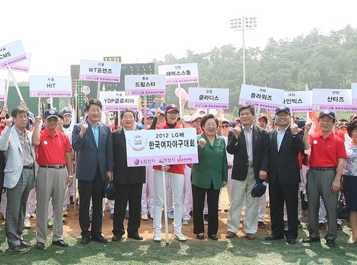 이날 오후 한국여자야구연맹 김을동 회장, 이한수 익산시장, LG전자 구본준 부회장 등은 전북 익산 야구장에서 열린 개막식과 개막경기를 관전했다.