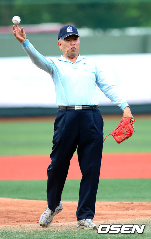 2일 오후 서울 목동구장에서 열린 '세계청소년야구선수권대회' 한국과 호주의 경기전 김응룡 전 삼성 라이온즈 사장이 시구를 하고 있다.