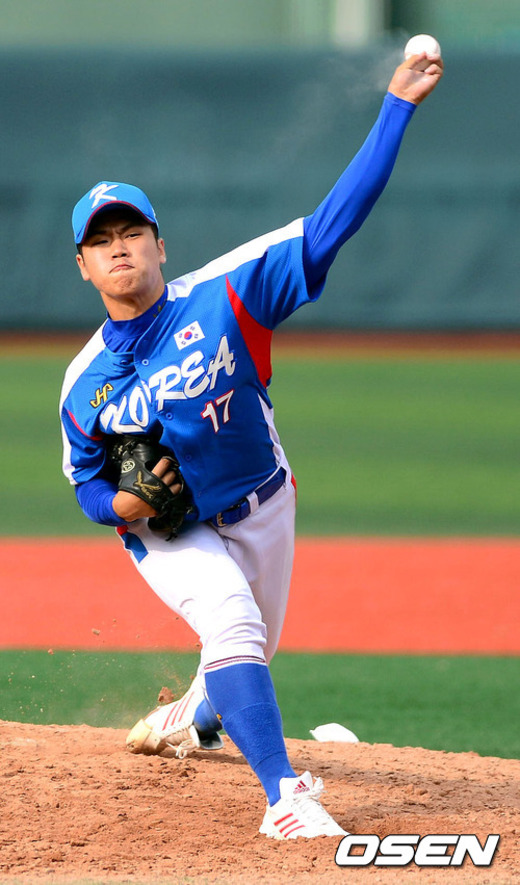 2일 오후 서울 목동구장에서 열린 '세계청소년야구선수권대회' 한국과 호주의 경기, 8회말 한국 심재민이 장현식에 이어 마운드에 올라 역투하고 있다.