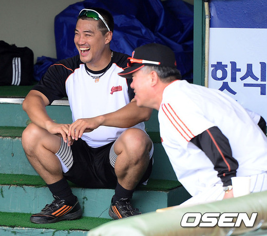 양승호(52) 롯데 자이언츠 감독은 2일 사직 LG전을 앞두고 훈련 중 떡 선물 세트를 한 아름 받아온 홍성흔(35)에게 농담을 던졌다. 뒤이어 김사율(32)도 커피와 떡 세트를 받아왔다.