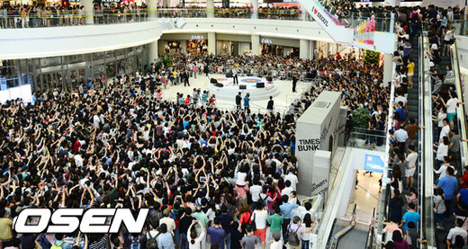 2일 오후 영등포 타임스퀘어 아뜨리움 홀에서 진행된 '타임스퀘어 오픈 3주년 축하무대'에서 싸이가 멋진무대를 선보이고 있다.