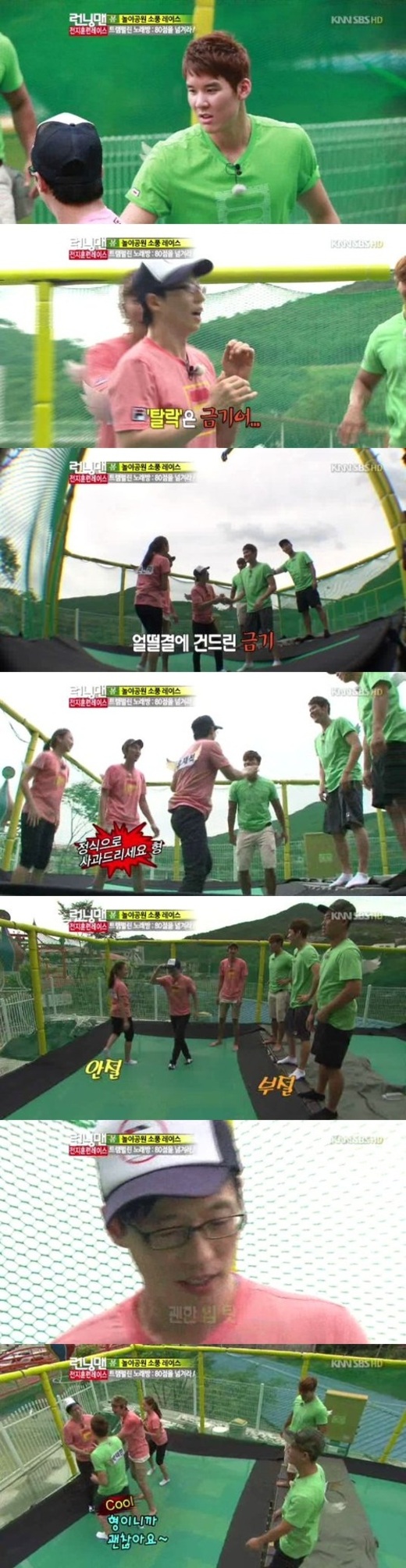 이에 유재석은 크게 당황해 하며 어쩔 줄 몰라 했다. 김종국은 "정식으로 사과드려라"라고 유재석은 안절부절 하는 모습을 보였다. 그러나 박태환은 유재석에게 다가가 "형이니까 괜찮다"고 쿨한 모습을 보여 눈길을 끌었다.
