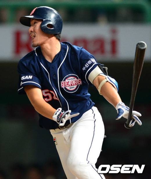 2일 오후 인천 문학구장에서 열린 '2012 팔도 프로야구' SK 와이번스와 두산 베어스의 경기, 9회초 1사 2루에서 두산 김재호가 적시 2루타를 날리고 있다.