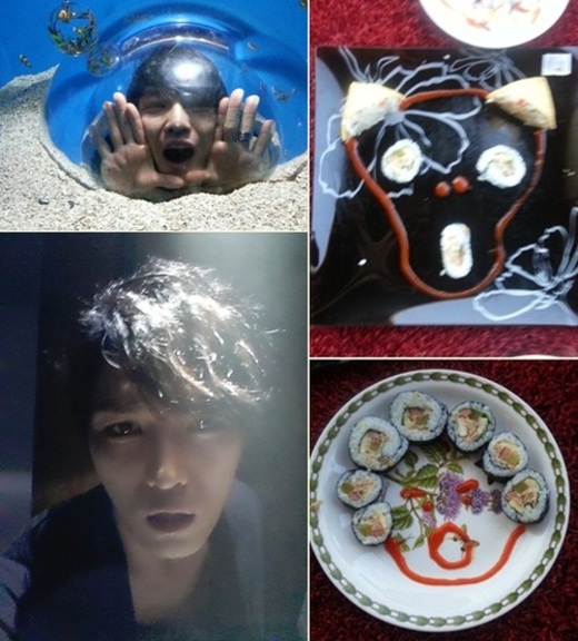 김재중은 지난 2일 오후 자신의 트위터에 "진이한 형이 만든 절규하는 김밥의 멍크", "이건 내가 만든 김밥 파마 아주머니"라는 글과 함께 두 장의 사진을 연달아 게재했다.