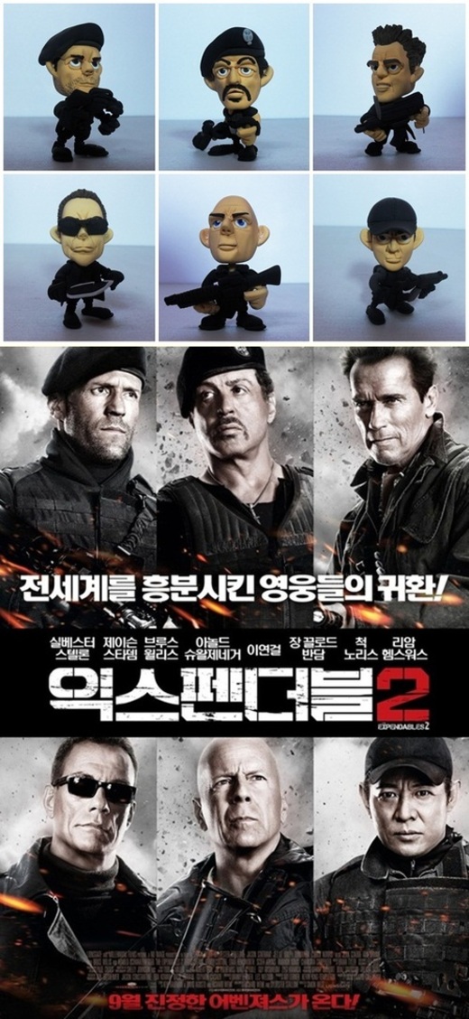 액션 블록버스터 '익스펜더블2'가 액션 영웅들과 100% 싱크로율을 자랑하는 클레이점토로 눈길을 모으고 있다.