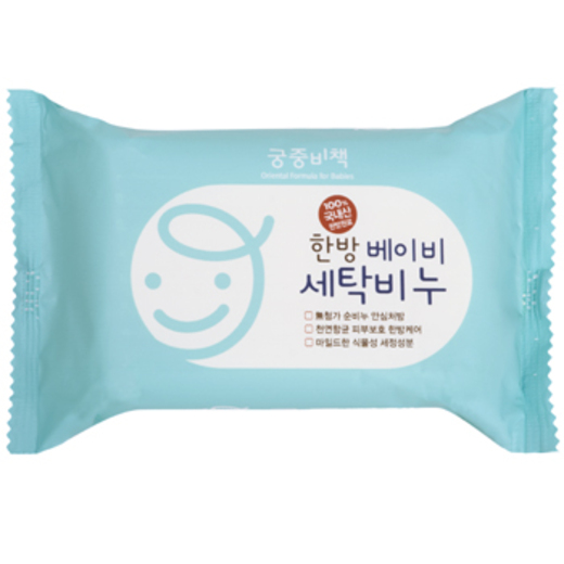‘궁중비책 한방 베이비 세탁비누’는 식물성 순비누분 98%로 순하며 방부제, 색소 등 아기피부에 유해할 수 있는 성분은 일절 사용하지 않아 아기 옷은 물론 민감성 성인 의류, 속옷 세탁 시에도 안전하게 사용할 수 있다.