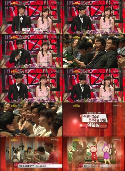 여진구와 김소현이 시상한 어린이청소년·문화예술부문의 작품상은 ▲어린이청소년(라디오)=KBS '소리동화 3부작-역사속의 장애위인' ▲어린이청소년(TV)=EBS '2012 딩동댕 유치원' 등이 차지했다.