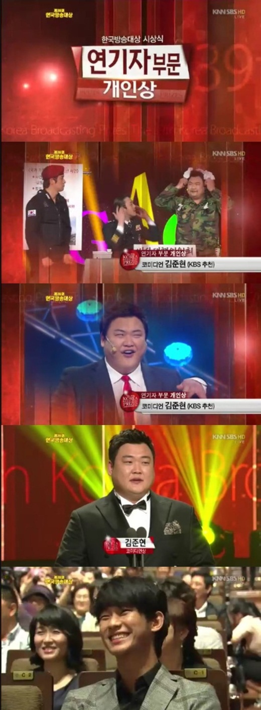 KBS 2TV '개그콘서트‘에서 활약하고 있는 김준현은 3일 오후 서울 여의도 KBS홀에서 개최된 제39회 한국방송대상 시상식에서 코미디언상의 영예를 차지했다.