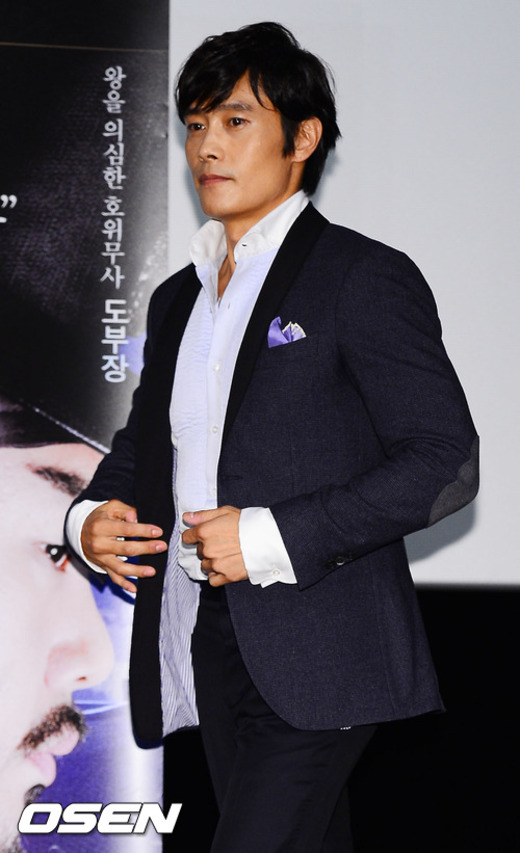 13일 오후 서울 왕십리 CGV에서 진행된 영화 '광해,왕이 된 남자' 시사회에서 이병헌이 슈트를 만지고 있다.