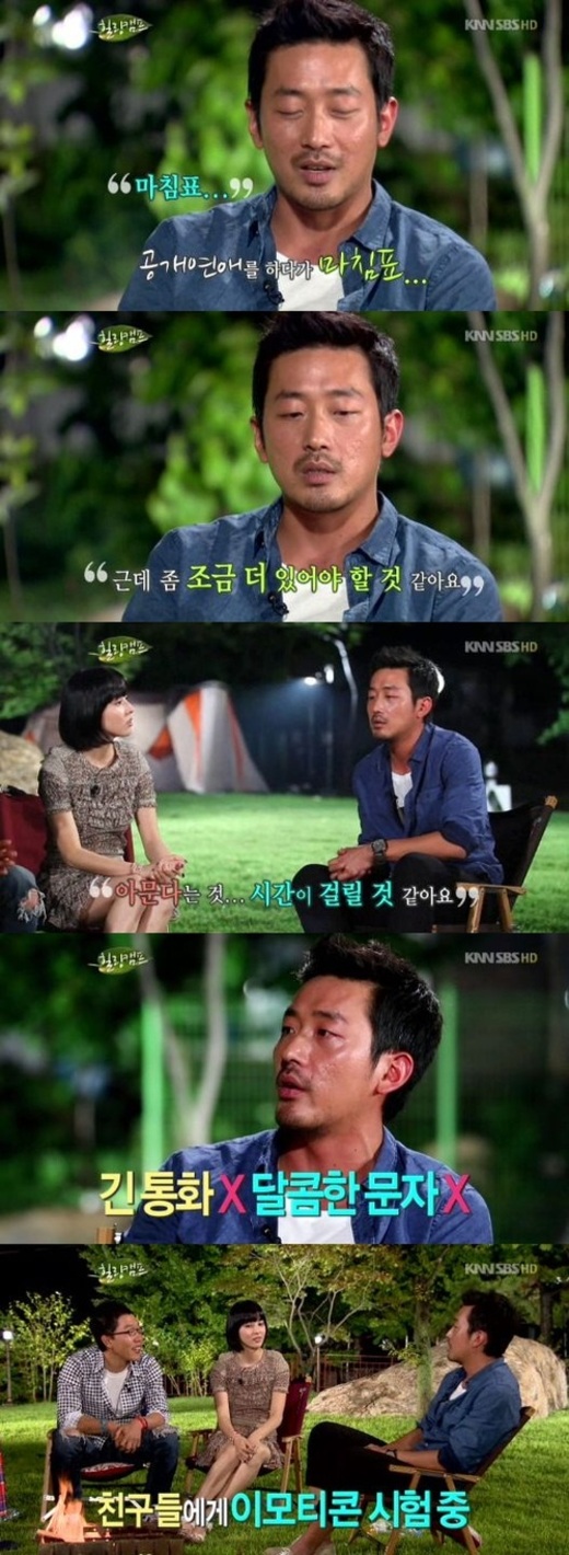 표현이 서툰 탓에 요즘 문자로 연습하고 있다고. 하정우는 "연애할 때 긴통화를 하지 못하고 달콤한 문자를 못 보낸다"며 "상대에겐 부족한 애정표현이라고 생각할 수 있다. 그래서 유료 이모티콘을 사서 표현하고 있다. 친구들에게 시험을 하는데 '미쳤다'고 한다"고 말해 웃음을 자아냈다.