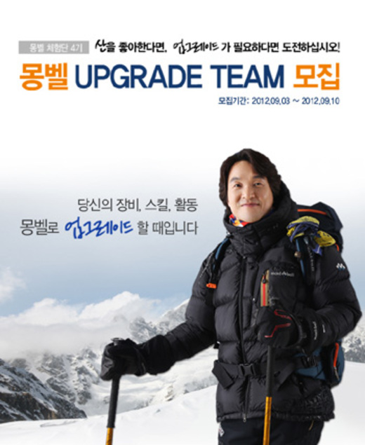 ‘몽벨체험단’은 아웃도어 제품 기술력을 직접 체험할 수 있는 소비자 참여 프로모션이다. 이번 ‘몽벨체험단 4기 업그레이드 팀’은 뛰어난 기능성과 보온성을 갖춘 등산가용 다운을 직접 체험하고, 전문 산악인 김창호 대장과 함께 업그레이드를 위한 다채로운 프로그램을 진행할 예정이다.