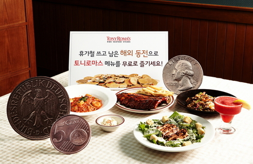 프리미엄 립하우스 토니로마스(www.tonyromas.co.kr)는 휴가철 쓰고 남은 해외 동전으로 토니로마스 메뉴를 무료로 즐길 수 있는 메뉴 바우처 교환 이벤트를 9월 한 달간 진행한다.