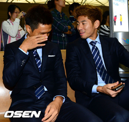 오범석과 하대성이 쑥스러워하고 있다. / soul1014@osen.co.kr