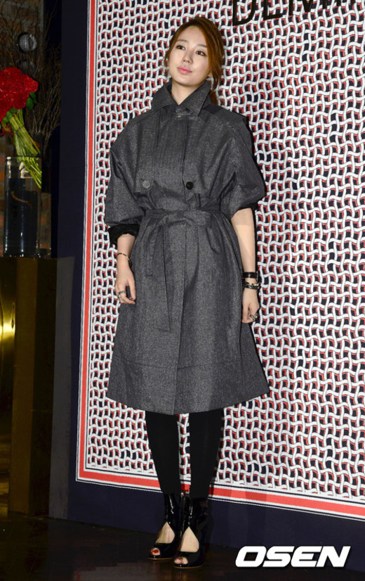 4일 오후 CGV 청담시네시티 11층 더 프라이빗 씨네마에서 열린 장민영 디자이너의 '드민 2012 F/W 컬렉션 공개'에서 윤은혜가 포토타임을 갖고 있다.