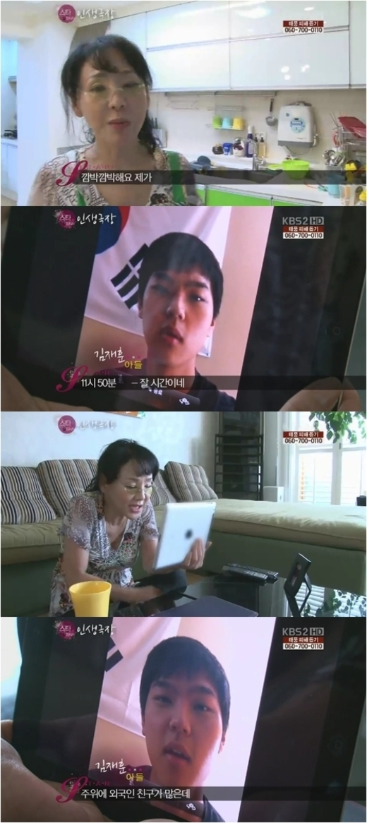 김수희는 4일 방송된 KBS 2TV ‘스타인생극장’에서 외국에서 공부 중인 아들과 영상 통화를 했다.