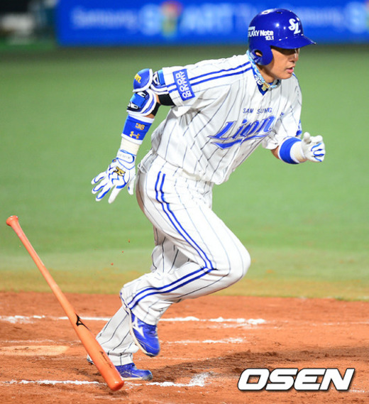 4일 오후 대구 시민구장에서 열린 '2012 팔도 프로야구' 삼성 라이온즈와 LG 트윈스의 경기에서 7회말 2사 주자 없는 상황에서 삼성 이승엽이 우익수 앞 1루타를 날리고 있다.