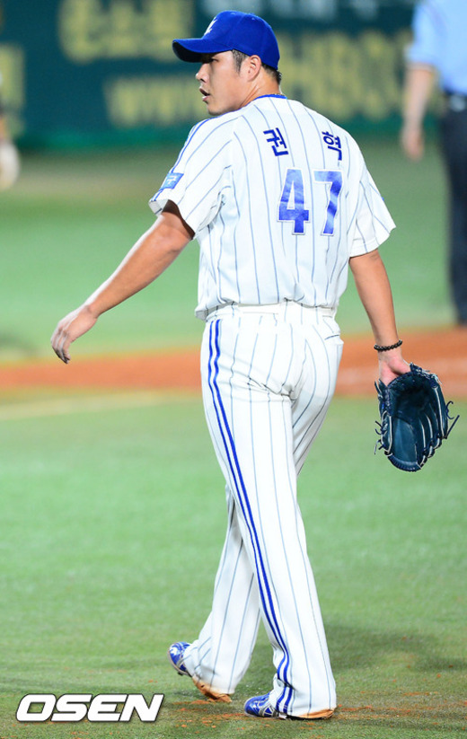 4일 오후 대구 시민구장에서 열린 '2012 팔도 프로야구' 삼성 라이온즈와 LG 트윈스의 경기에서 9회초 1사 주자 3루 이진영이 타석에서 삼성 권혁의 볼을 맞고 화를 내며 마운드쪽으로 걸어갈때 권혁이 교체되고 있다.