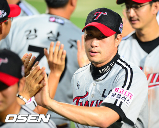 경기를 마치고 봉중근이 코치들과 하이파이브를 하고 있다. / rumi@osen.co.kr