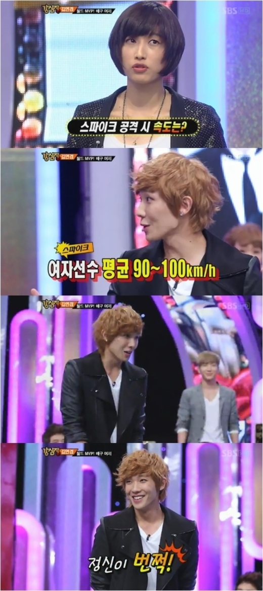 이준은 4일 방송된 SBS 토크쇼 ‘강심장’에서 김연경의 강스파이크의 원천인 손바닥으로 맞아야 하는 상황에 놓였다. 김연경이 얼마나 세게 때리는지 시범에 나섰고 MC들이 이준을 희생양으로 꼽은 것.