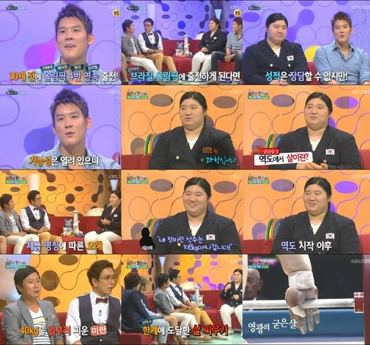 장미란은 "올림픽에서 해설위원이 108kg이라는 몸무게를 공개한 적이 있는데 사람들이 다 놀라더라. 많아봤자 80kg인 줄 알았다”면서 역도를 하며 40kg을 증량했다고 고백했다.
