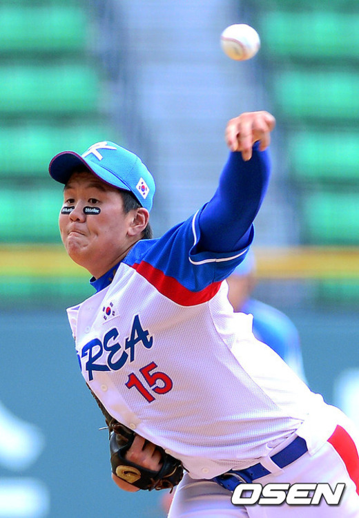 5일 오후 서울 잠실구장에서 열린 '세계청소년야구선수권대회' 한국과 대만의 경기, 1회초 한국 선발 이수민이 역투하고 있다.