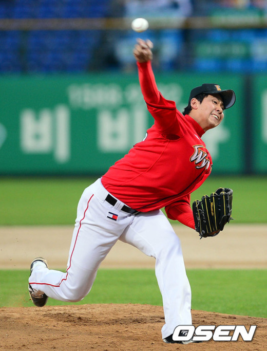 SK 우완투수 윤희상이 모처럼 웃었다. 5일 광주 KIA전에 선발등판해 7⅓이닝동안 8피안타 2볼넷 3실점으로 호투하고 시즌 7승째를 따냈다. 지난 8월 1일 넥센전 이후 35일만의 누린 승리의 기쁨이었다.