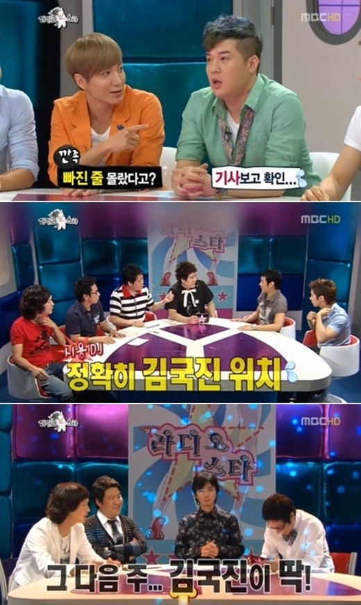 그는 "지금 김국진이 앉아있던 자리에 제가 앉아 있었다"며 "제가 '라디오스타'에서 빠지는 것도 몰랐는데 기사를 보고 알았다. 다음 주에 제 자리에 (김국진이) 앉아 있었다"고 우스갯소리를 했다.