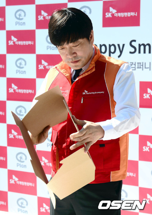 6일 오전 서울 중구에 위치한 상공회의소에서 진행된 SK마케팅앤컴퍼니의 '해피 스마일 매칭'프로그램 행사에서 손현주가 선물 포장을 위해 박스를 만들고 있다.