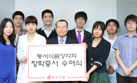 재단법인 동서식품장학회는 5일 ‘2012년도 장학증서 수여식’을 개최했다. 더불어 대학교와 고등학교 장학생 144 명에게 장학증서를 수여하고 총 3 억 6000여 만 원의 장학금을 지급했다.