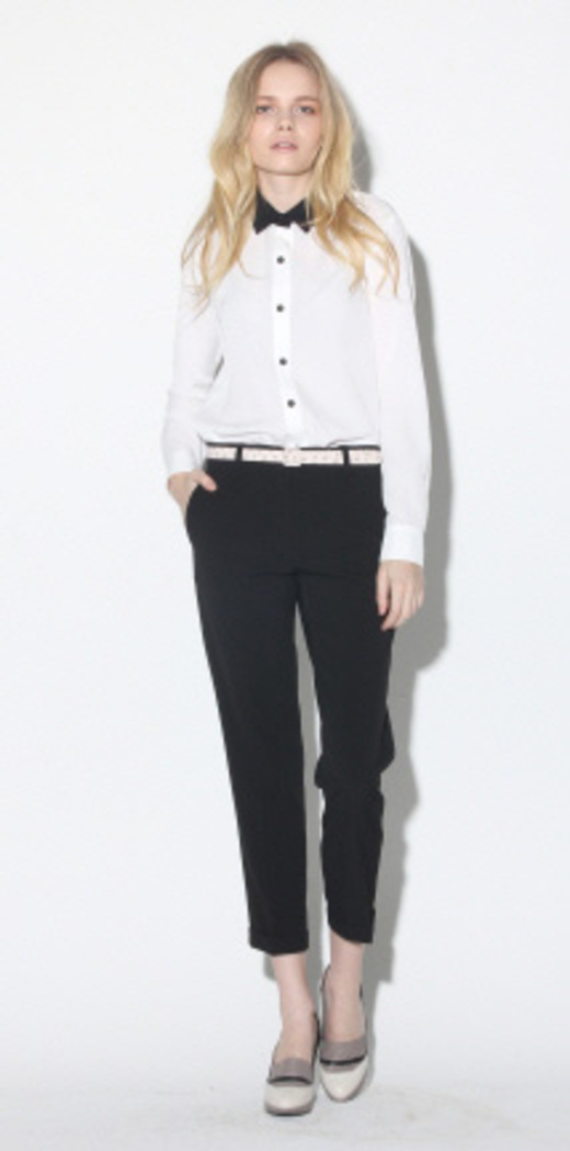 이럴 땐, 셔츠 아이템을 선택하는 것이 좋다. 셔츠는 낮에는 따사로운 햇볕과 에어컨 바람으로 부터, 밤에는 쌀쌀한 바람으로 부터 보호해주는 매력적인 아이템이다. 사진 속 컬러 포인트 화이트 셔츠는 단추와 셔츠칼라를 블랙 배색으로 디자인하여 단조로움을 피하고 포인트를 주어 세련미를 더한다. 또 하늘하늘한 소재로 제작돼 착용감이 우수하다.