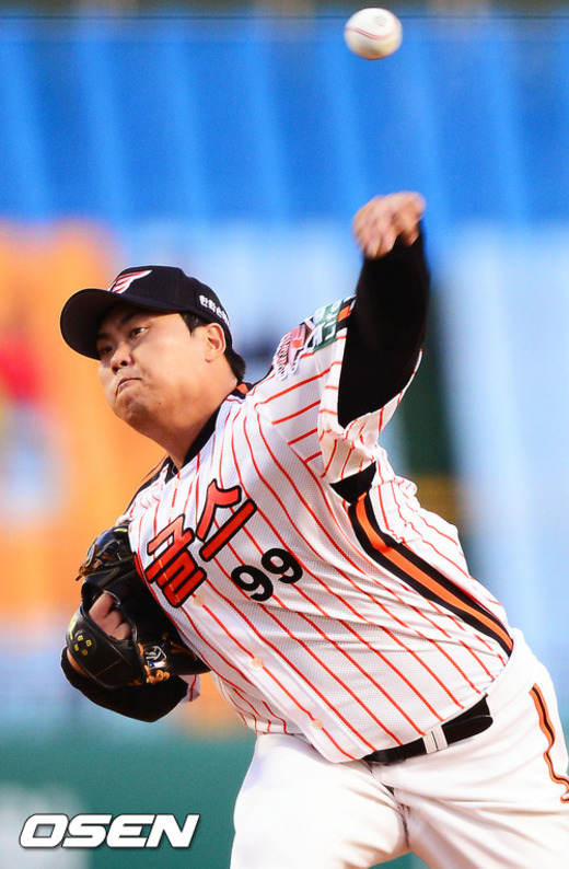 6일 오후 대전 한밭야구장에서 열린 한화 이글스와 롯데 자이언츠의 경기에서 한화 류현진이 힘차게 공을 뿌리고 있다.