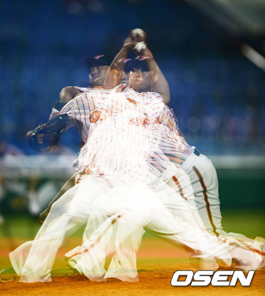 6일 오후 대전 한밭야구장에서 열린 한화 이글스와 롯데 자이언츠의 경기에서 한화 선발 류현진이 힘차게 공을 뿌리고 있다.