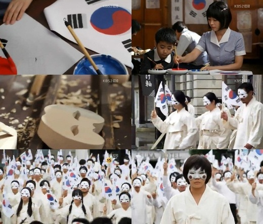 6일 오후 방송된 '각시탈' 최종회에서는 수백명의 각시탈을 쓴 대한민국 국민들이 일본을 향해 "대한민국만세"를 외치는 모습이 전파를 탔다.