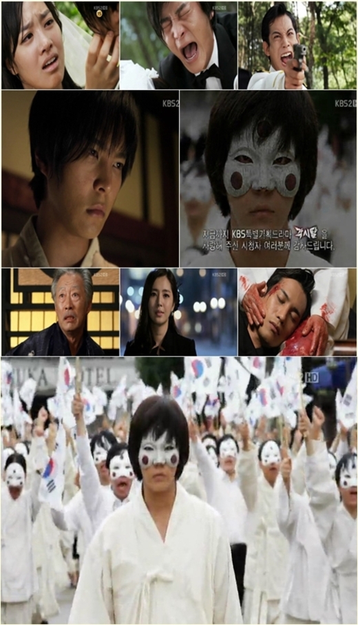 마지막 회에서 각시탈 이강토가 자신을 대신해 죽음을 맞은 아내 목단의 식어가는 육체를 끌어안고 울부짖으면서도, 개인적인 복수보다는 그 원흉인 우에노 히데키를 처단하러 가는 장면은 이 드라마가 전달하고자 하는 메시지를 집약적으로 보여줬다.
