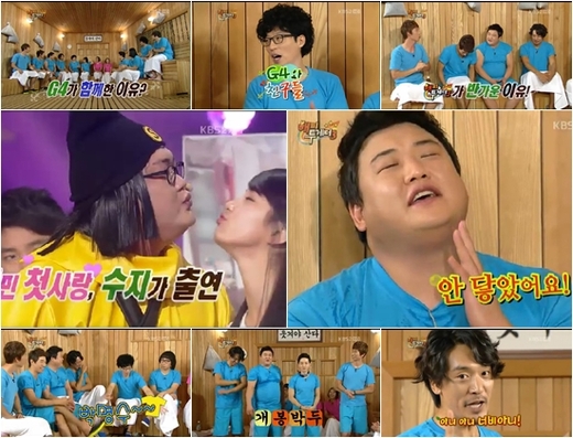 특히 김준현은 KBS 2TV '개그콘서트'에서 있었던 수지와의 뽀뽀 사건의 전말을 묻는 질문에 "정말 안 닿았다"고 해명해 눈길을 끌었다. 여기에 허경환이 "수지 씨가 나왔을 때 대기실에 있던 남자개그맨들이 다 모니터를 하고 있었다. 김준현 씨가 내려오자마자 '닿았어, 안닿았어'를 물어봤고 ‘닿지 않았다’고 하자 일제히 환호성을 질렀다"고 현장 분위기를 전해 웃음을 자아냈다.