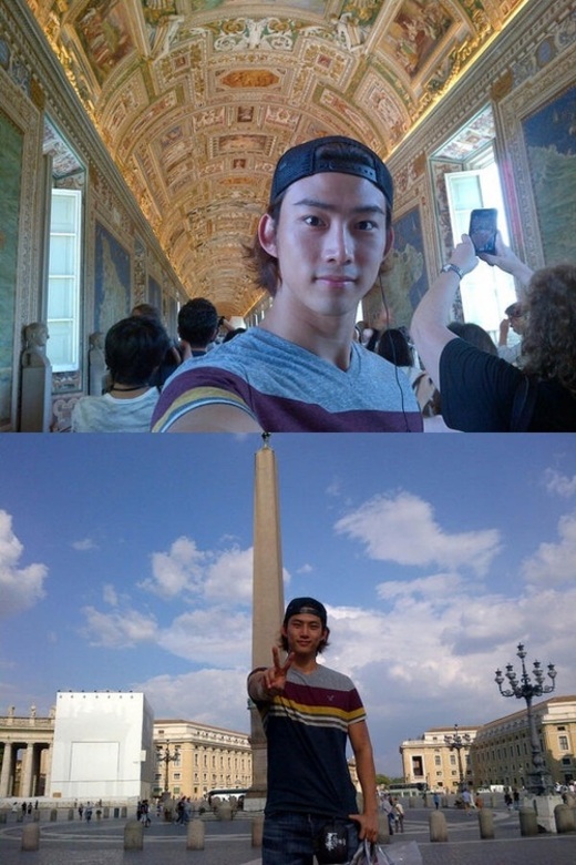 그룹 2PM의 옥택연이 이탈리아의 세인트 피터 광장에서 모델 포스를 풍기는 사진을 찍었다.