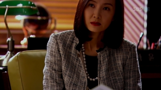 채시라는 SBS 주말 드라마 ‘다섯 손가락’에서 카라와 소매 끝, 허리 끝 단에 블랙 컬러가 덧대어져 있는 독특한 디자인의 트위드 소재의 투피스를 선보였다. 세련된 단발의 헤어스타일과 강렬한 레드 립, 볼드한 진주 목걸이가 재벌가 '사모님'의 카리스마를 더 돋보이게 한다.