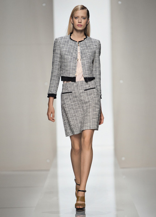 사실 이 투피스는 휴고 보스(HUGO BOSS)의 보스 블랙(BOSS Black) 라벨의 2012 F/W 신상품으로 이미 런웨이에 등장한 바 있다. 런웨이에 선 모델은 여성스러움을 강조한 긴 헤어와 밝은 컬러의 이너웨어, 브라운 컬러의 펌프스 힐로 채시라보다 가볍고 페미닌한 분위기를 연출했다.