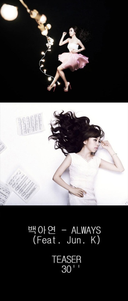 김준수는 7일 새벽 자신의 트위터에 "[Teaser 30"] 백아연 - Always (feat. Jun. K)"라는 소개글과 30초 가량의 음원을 공개했다.