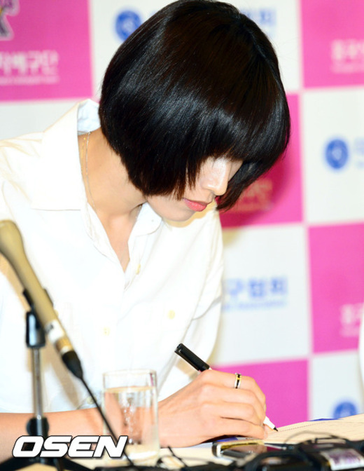 7일 오후 프레스센터 매화홀에서 진행된 '김연경 선수 해외진출 기자회견'에서 김연경이 해외진출 협의서에 사인을 하고 있다.