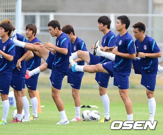 축구 대표팀 선수들이 스트레칭 훈련을 하고 있다. / sunday@osen.co.kr